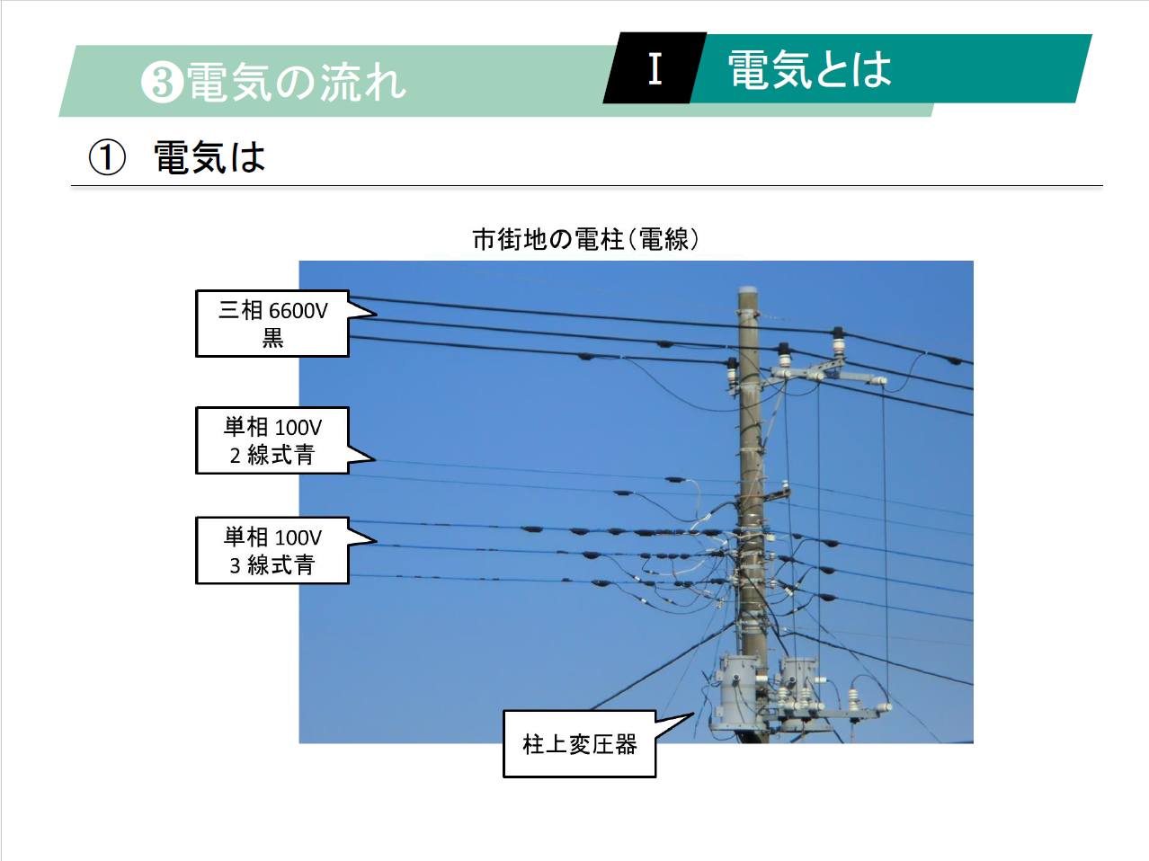 電気の基本、電圧と電流と抵抗、静電気、直流と交流の働きと動作・性質などを基本知識として学びます。